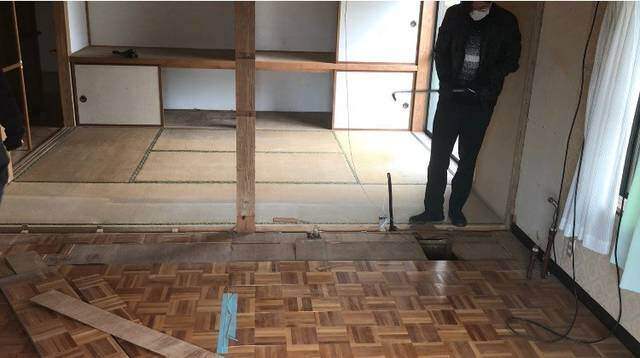 畳を剥ぐと、和室の床は洋室に比べてが3㎝低いことが分かりました。