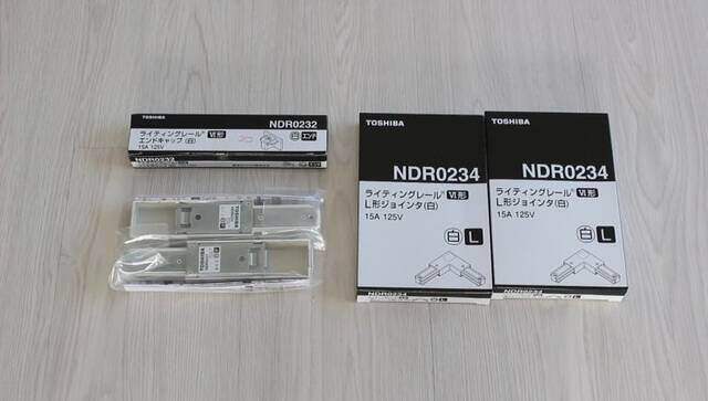 右側2つが1Mのダクトレールと2Mのダクトレールを繋ぐのに必要な「L型ジョインタ」