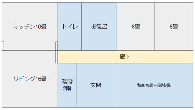 今回は、間取り図の左側にある2部屋、キッチンとリビングをリノベーションしていきます。