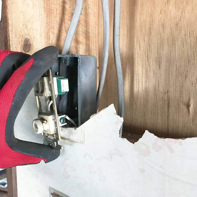 電源、コンセント周りの外し方が分からず、石膏ボードの壁は敬遠しながら進めていましたが、いよいよ手をつけないといけない状況になりました。