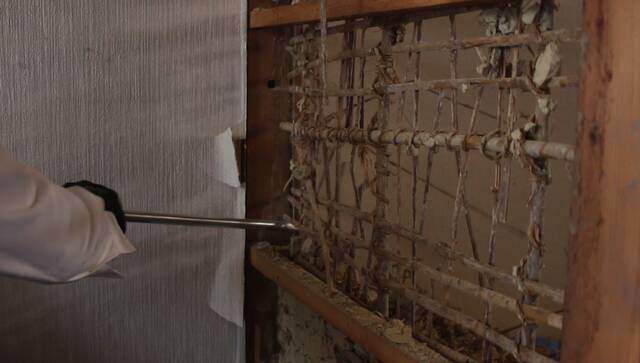 ※ボード状の砂壁であれば叩くと簡単に割れますが、竹がしなってなかなか崩れません。