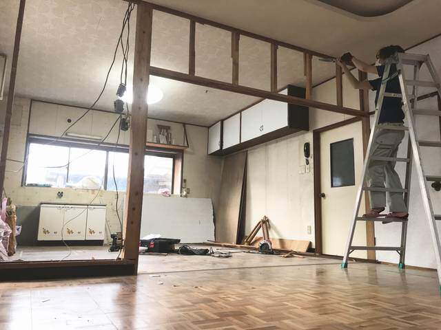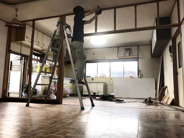 28歳で福岡へ移住し、築40年を超える2件の物件をセルフリノベーションしながら生活。その様子をブログメディア「DIY MAGAZINE」で公開しているセーチです。前回は壁を壊し、リビングとキッチンを繋げて一間にした所で終えました。今回は残っている鴨居を取り除き天井の隙間を埋める作業です。