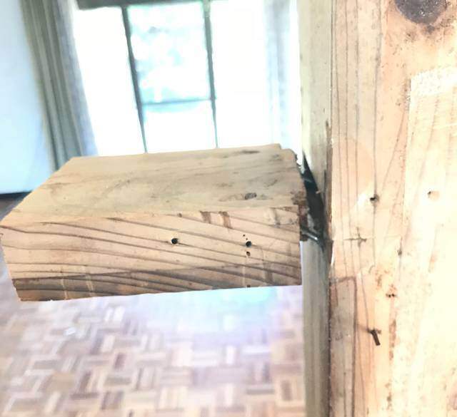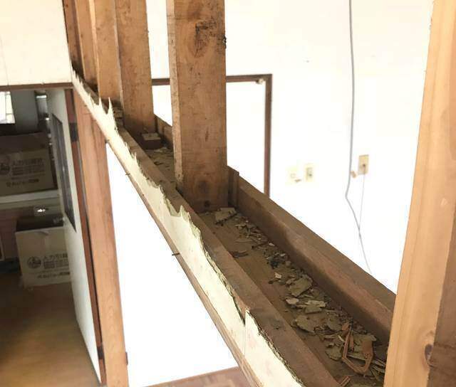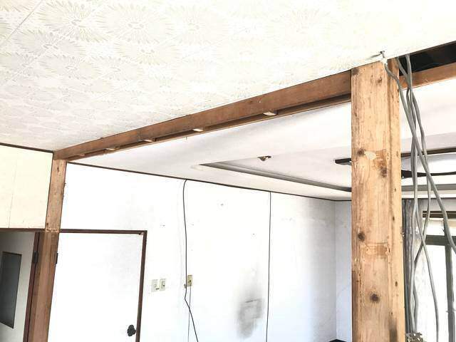 こちらは、前回壁を撤去した後に残された鴨居の状態。ご覧の通り上下左右ガッチリ固定されています。