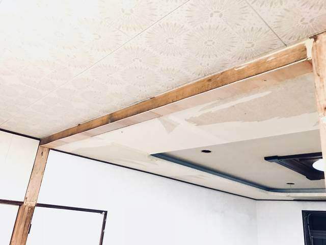 ①キッチン側の高さに合わせて天井を修復