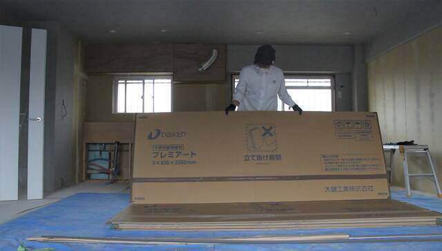 使用するキッチンパネルはDAIKENの「プレミアート」。サイズは「3mm×935mm×2550mm」です。