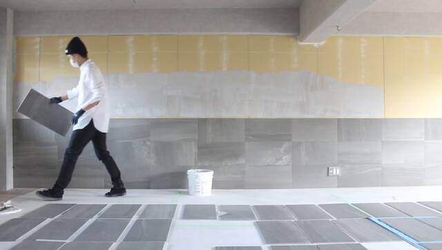 使うのはグレーの石目柄が特徴の「FE6208」。(サンゲツ)