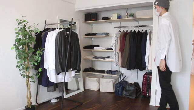 寝室のクローゼットは、生活感ある物を置かないという点と、そこまで収納する物がないので扉を付けづにこの形にしています。(扉代が高かったというのと、後付けもできるの無しでいきました)