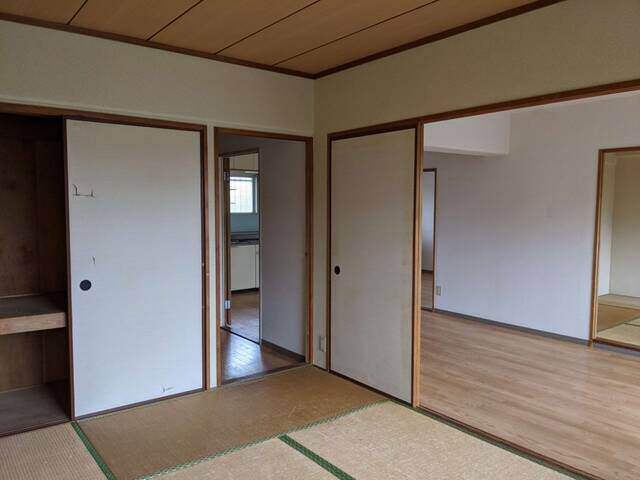 6畳和室が2部屋と洋室の3LDKの間取り、リビングキッチンは細長い作りになっています。