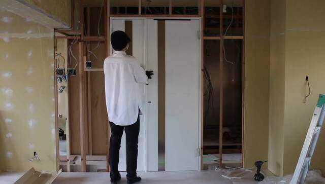 家具の搬入などを考えて、リビングキッチンの入り口は親子ドアにしました。