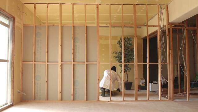 寝室は区切っておきたいので間仕切り壁を作り24畳のリビングキッチンと6畳寝室に分けました。