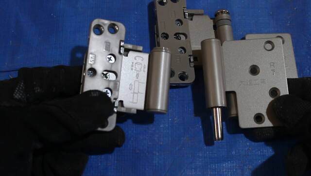 ドア枠には支える方が固定、ドアには差し込む方を固定します。