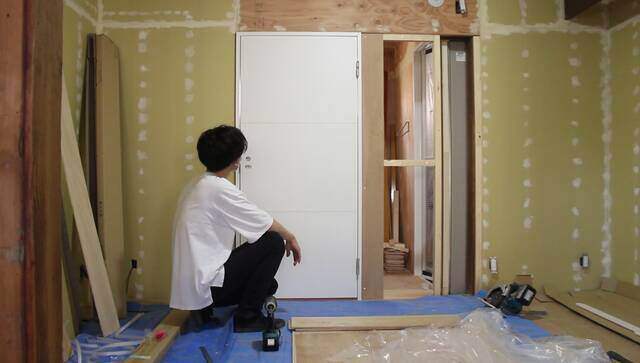 「大建工業」の片開きドア「ハピアU4 TH」を取り付けます。