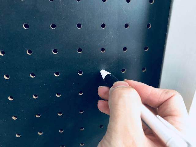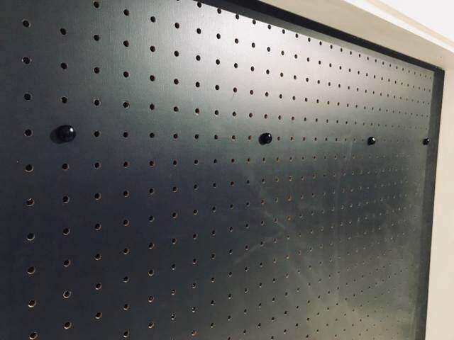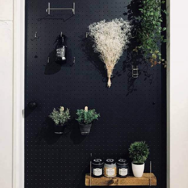 部屋の雰囲気に合わせて、今回は黒い有孔ボードを用意しました。