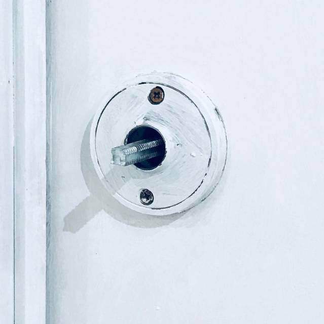 ボードをはめる為に土台は残し、ドアノブ部分だけを外します。ネジで固定されているだけなので簡単です。