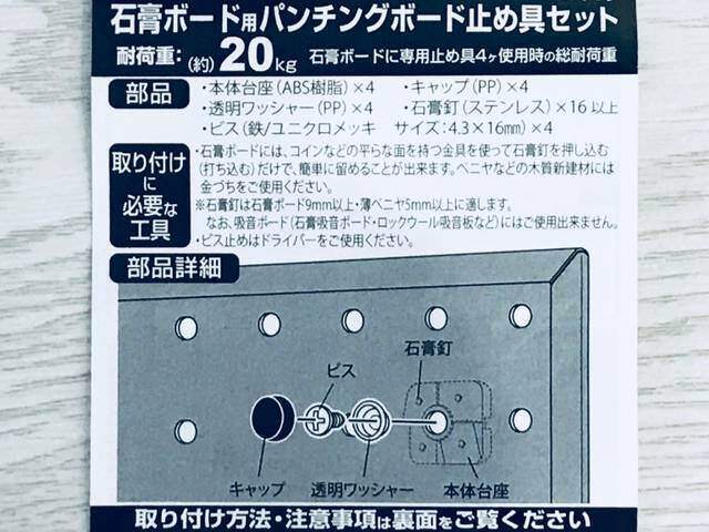 そのために今回は「石膏ボード用パンチングボード止め具セット」というものを準備しました。