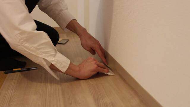 カットする方法はクッションフロアや壁紙と同じ要領で、地ベラとカッターを使って行います。