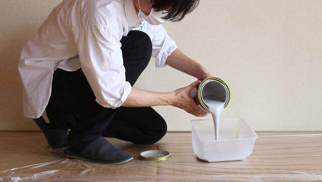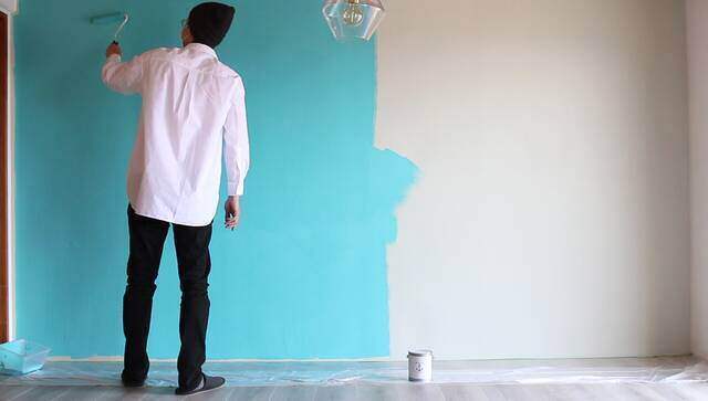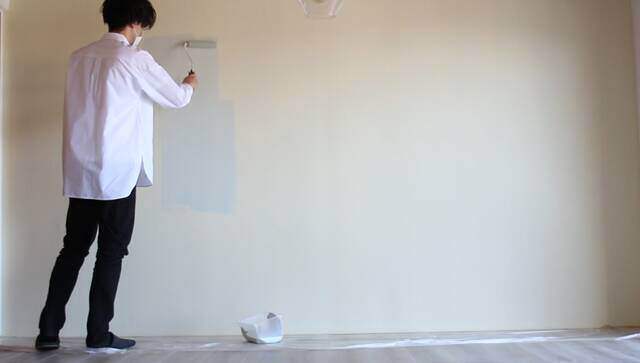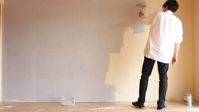 壁を塗装する時はローラーにたっぷり塗料を染み込ませ、しぶきが飛ばないようにゆっくり塗ります。