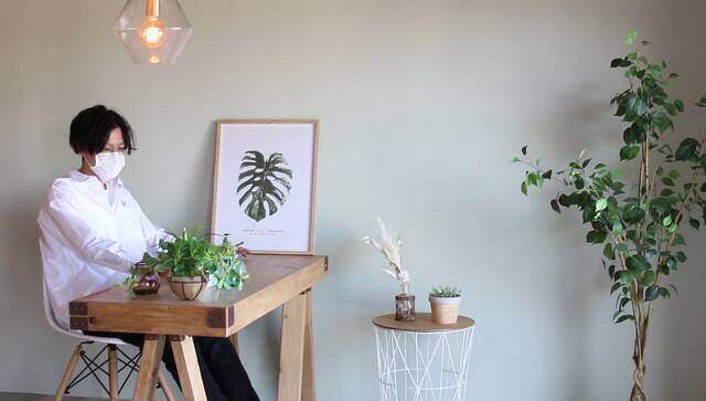 グレーが入っているからか、想像より優しいグリーンで観葉植物と木製家具に合わせやすいと思いました。