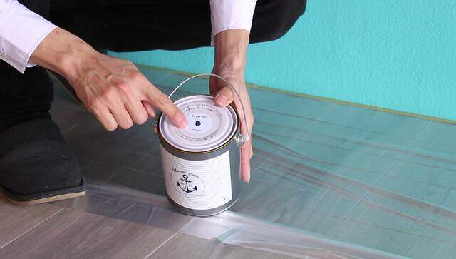 床面にはマスカーを敷いて、壁にはマスキングテープを使って両隣の壁を保護。
