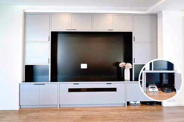 そしてお掃除ロボットの定位置を右下に備え、扉を開閉しなくても自動で居場所に戻れるよう、扉下部分に少しゆとりを持たせています。