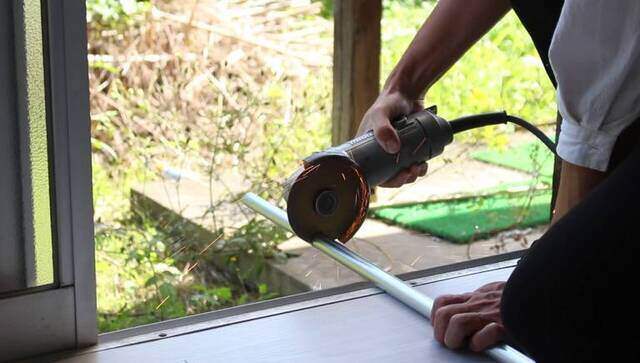 グラインダーをゆっくりと下書きした線に当ててカットします。