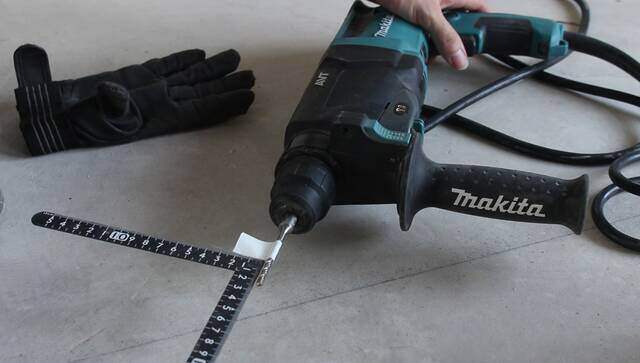 ビットをハンマドリルに取り付けたら、穴の深さを調整します。