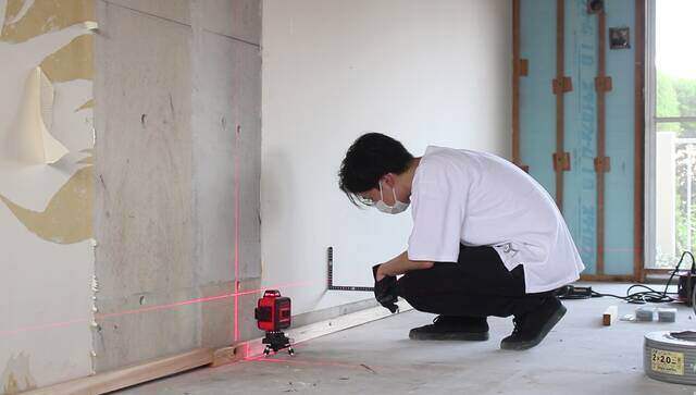 垂直に壁を作る為に、レッドレーザー墨出し器を用意しました。