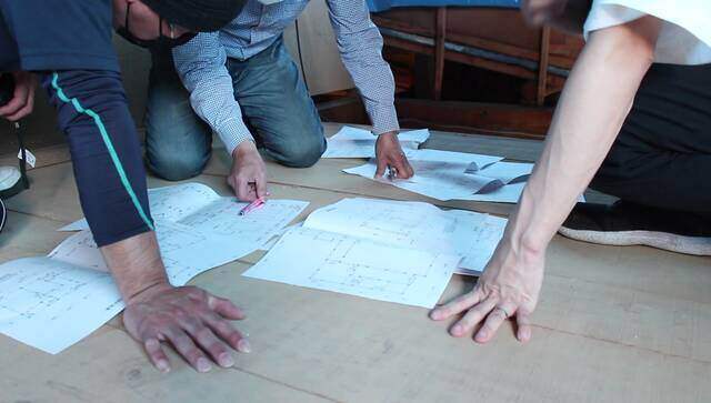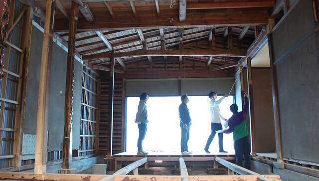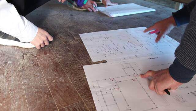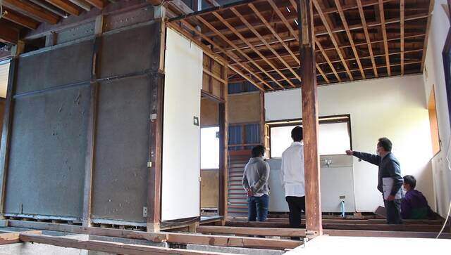 前回は解体作業をし、ほぼほぼスケルトン状態までもっていきました。今回は1級建築士の先生と耐震調査して補強プランを練る作業です。