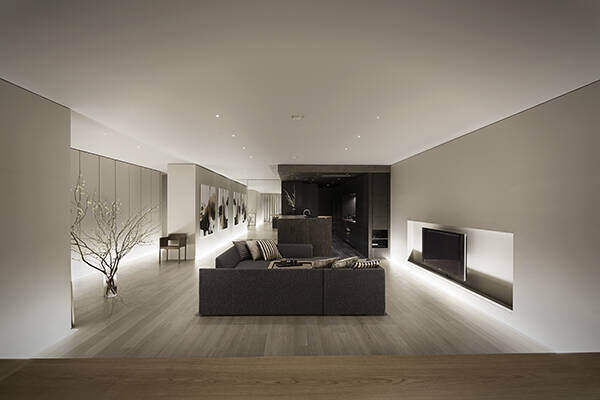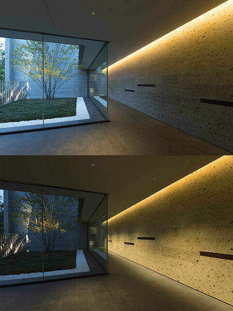 時間に応じて調光と光のポジションを変化させることで、自然光と連動して空間の表情を豊かに表現しています。