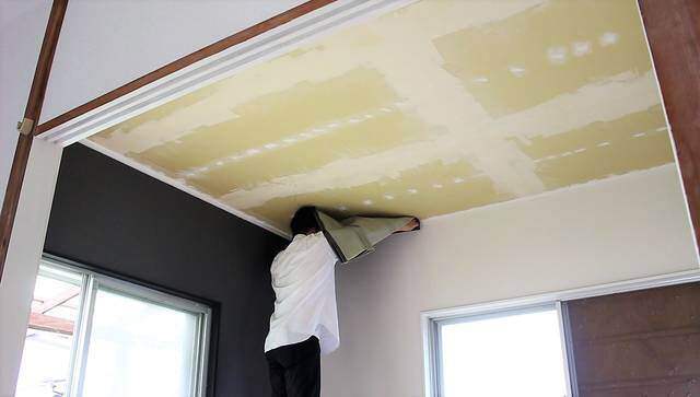 ・天井に引っ付けた後に、歪みや空気を取り除いて整える。