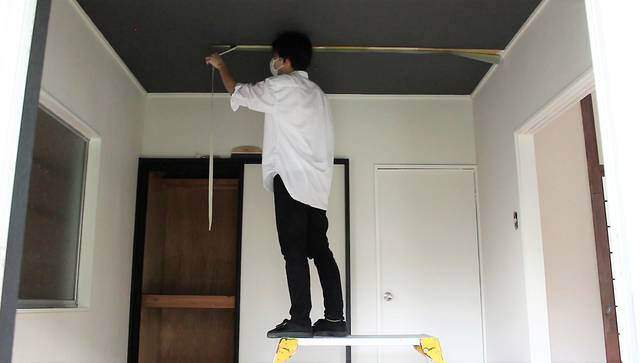 天井の長さを測り、切りしろ分の長さを多めにとってカット。