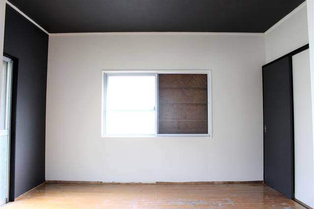 前回の記事では、間取り図の右上、6畳部屋の窓枠やドア枠などを白と黒のペンキで塗装しました。