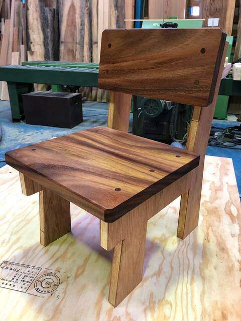 これで完成です。無垢材の色味や目が味わい深く、温かみも感じられるチェアになりました。何よりお父さんお母さんが子どものために作ったオリジナルということが意味があるかと思います。受け取った子どももきっと想いを感じ、大切に使ってくれるかなと思います。
