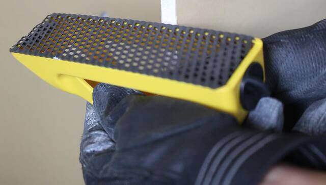 中に刃を仕込んでいて1~4段階で切断深さを調整でき、石膏ボードの角を取る道具です。