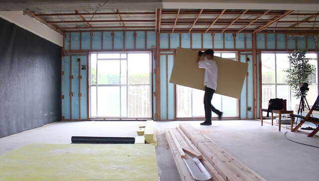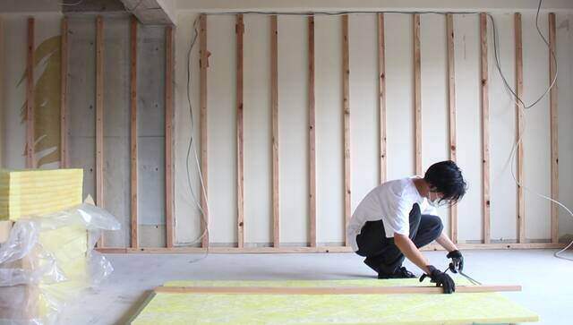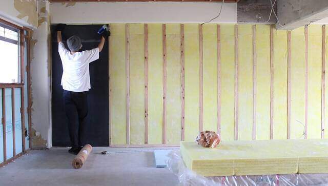 今回は、前回作った下地に遮音材と吸音材を使って防音壁を仕上げる作業です。