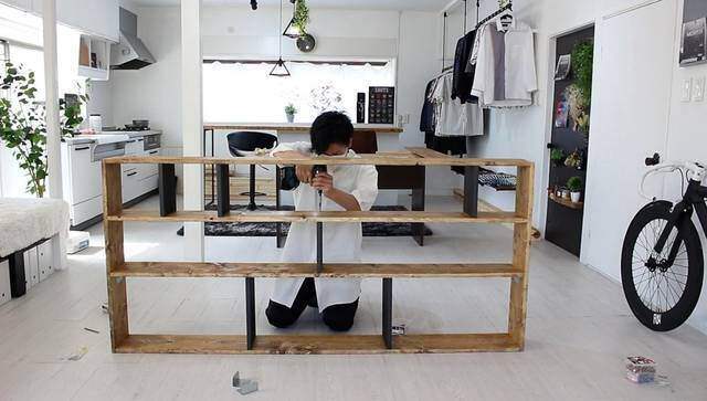 「ディアウォール」や「ラブリコ」を使う場合、2×4材や1×4材の幅が狭い木材で作ってください。