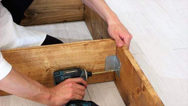 コーナークランプで固定した木材に、35mmの「造作美人」ビスで固定します。