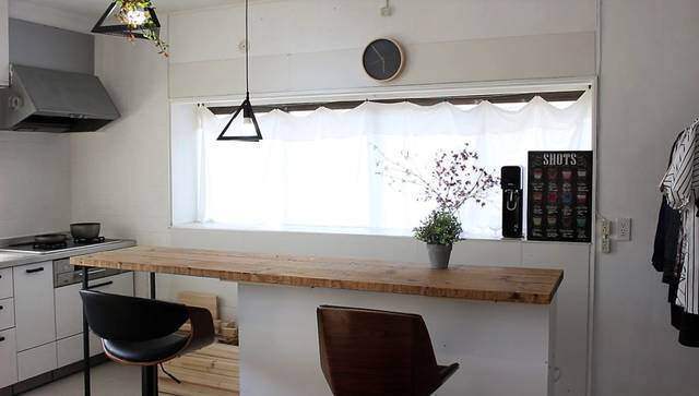 カウンターテーブルに合わせて作った収納棚は、キッチンの雰囲気をガラッと変えてくれました。