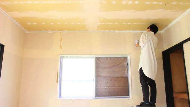 前回の記事では、間取り図の右上、6畳部屋の天井の石膏ボードにパテ処理をしました。