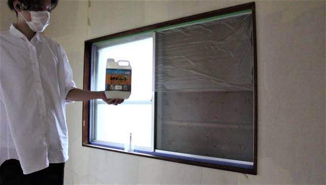 サッシ部分は、マスキングテープを窓枠との境目に張ります。