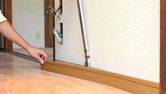 (古い建物の場合、巾木が壁に埋め込まれている場合があるので、ノコギリで削るか巾木を外さないかの判断をしてください。)