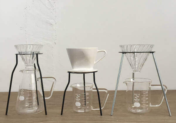 材料にある“組立式三脚台”というのが、このプロダクトの1つ目の秘密。こんなのどこに売ってるんだと思われたかもしれませんが、実はこれ、アルコールランプの実験などで用いられている三脚台なんです!なので、理科の授業に見たことがあるという方も多いのではないでしょうか。鉄製の三脚台なんて雑貨屋などで購入すると高くつきそうですが、こちらは数百円で買えてしまう驚きの手軽さ!しかもコーヒーをドリップするのにちょうど良いサイズ感であるのと、組立式なのでキャンプなどでも活躍間違いなしの、隠れた万能アイテムなんです。