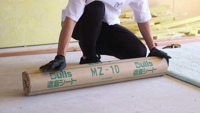 遮音シートの重なり合う部分を意識しながらサイズを測って施工すると楽に張れます。