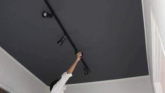 ダクトレール照明を設置し、カーテンや小物を取り付ける。