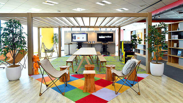「株式会社バンダイナムコエンターテインメント」では、オフィス内に人々の活きたつながり"LIVE"と、知恵や情報が集まる "RALLY"を合わせて、「LIVE-RALLY」と名付けられた共創スペースがあります。