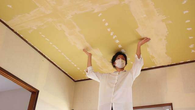 28歳で福岡へ移住し、築40年の物件をセルフリノベーションしながら生活。その様子をブログメディア「DIY MAGAZINE」で公開しているセーチです。1軒目に続いて、築45年の相続物件(2軒目)をリノベーションしてきた過程をお届けします。前回作った天井骨組みに断熱材を入れて石膏ボードを貼りました。今回は壁紙を貼る下地処理として石膏ボードのつなぎ目をパテで処理していきます。