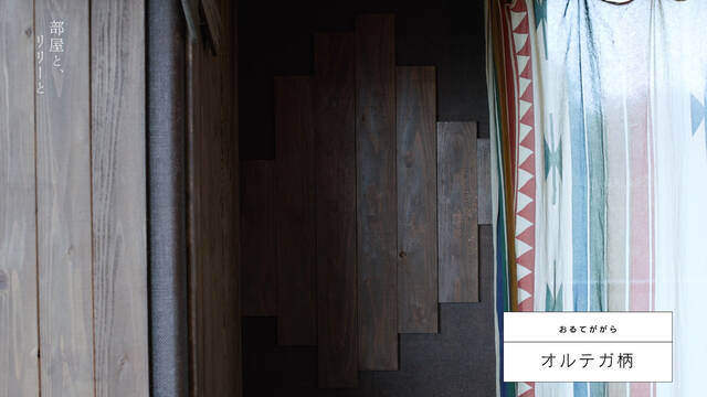 カーテンに使われているオルテガ柄に合わせて、壁に貼る飾り木もサイズを調整したそうです。
