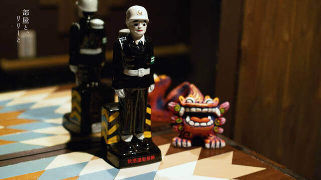 玄関ではシーサーと宮古島のまもる君がお出迎え。