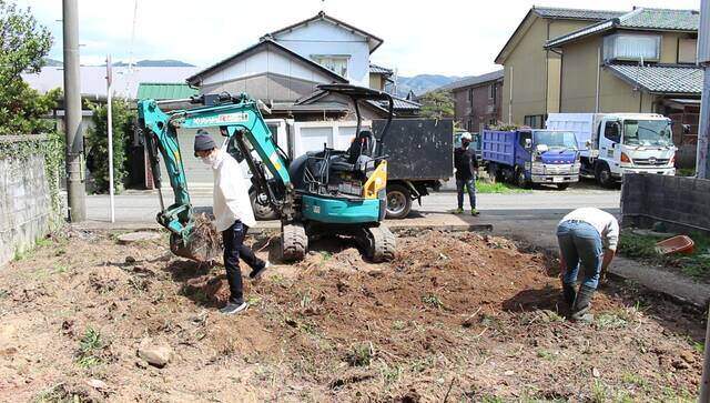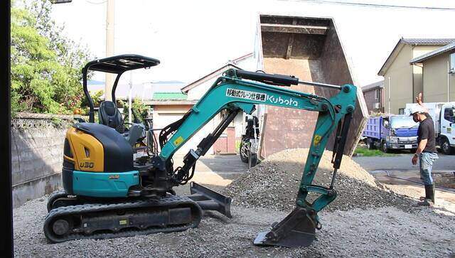 今の状態だと地面がフカフカで、トラックを乗り入れた時に沈んでしまいます。