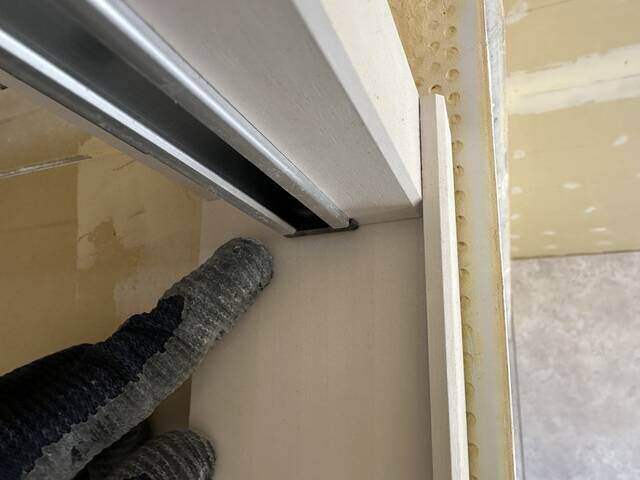 枠の調整が終わったら扉を吊り込むレールを固定。(レールは後付け)